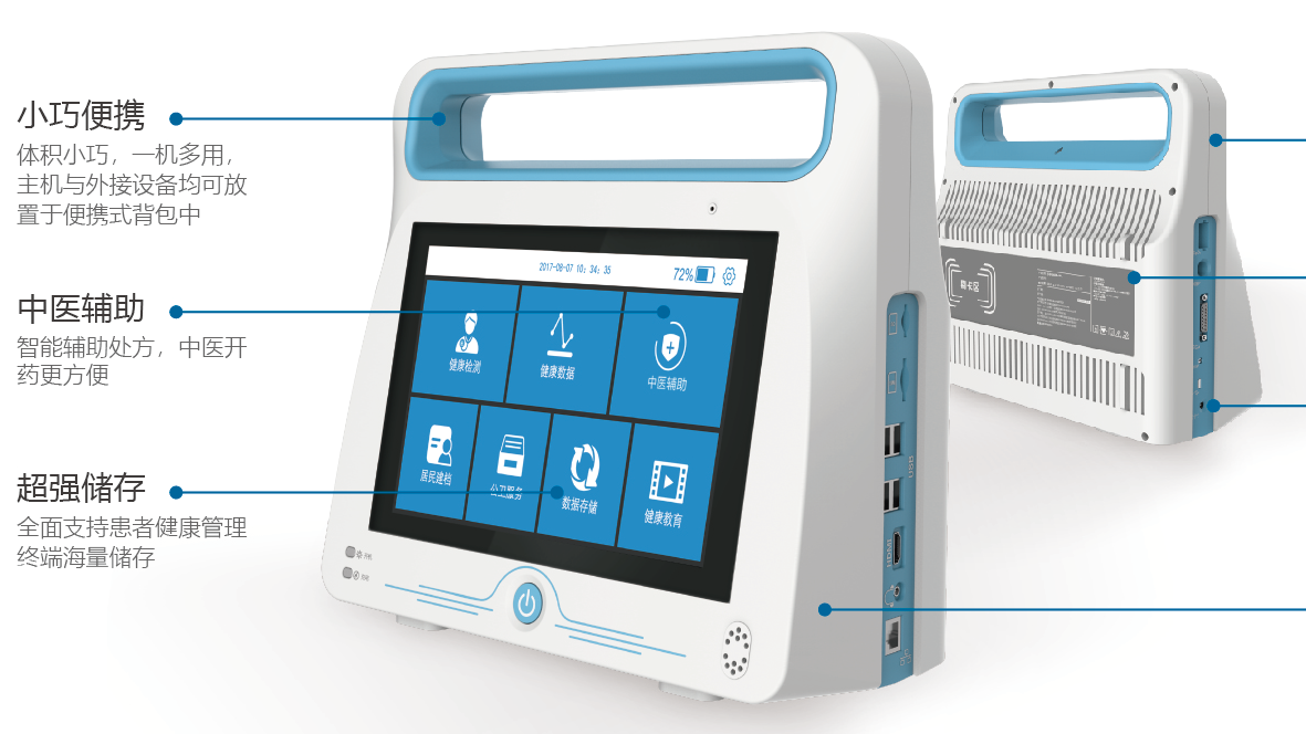 支持智能監測設備接入,進行數據的長期追蹤、分析與評估。數據按及地方標準建立,內置中醫體質辨識,醫生可現場分析中醫體質。