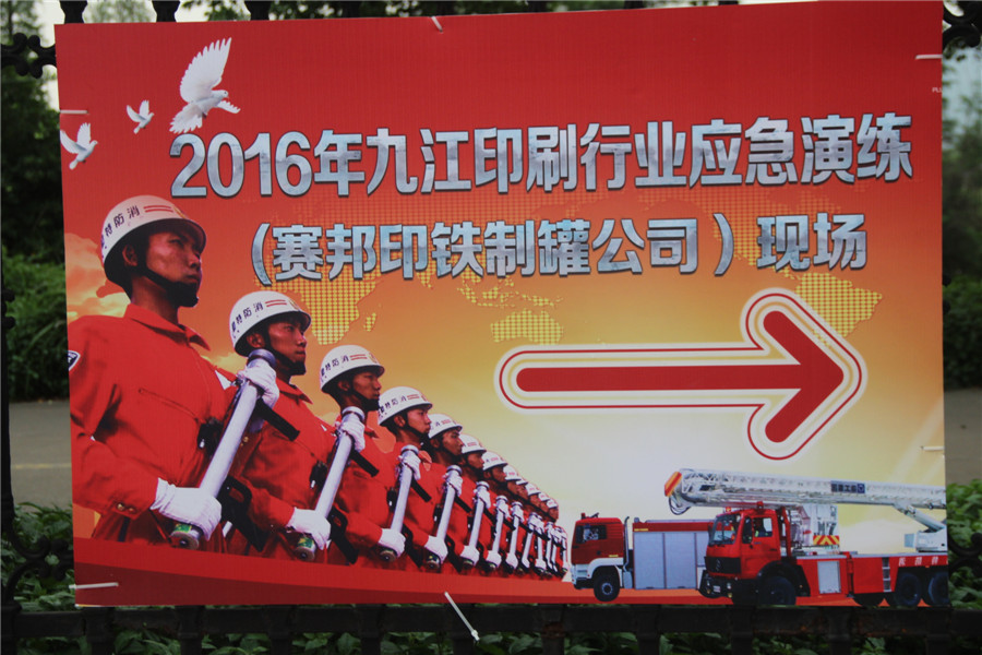 本次演練地點設在位于九江鎮龍高路的佛山市南海賽邦印鐵制罐有限公司,演習共分三個階段。